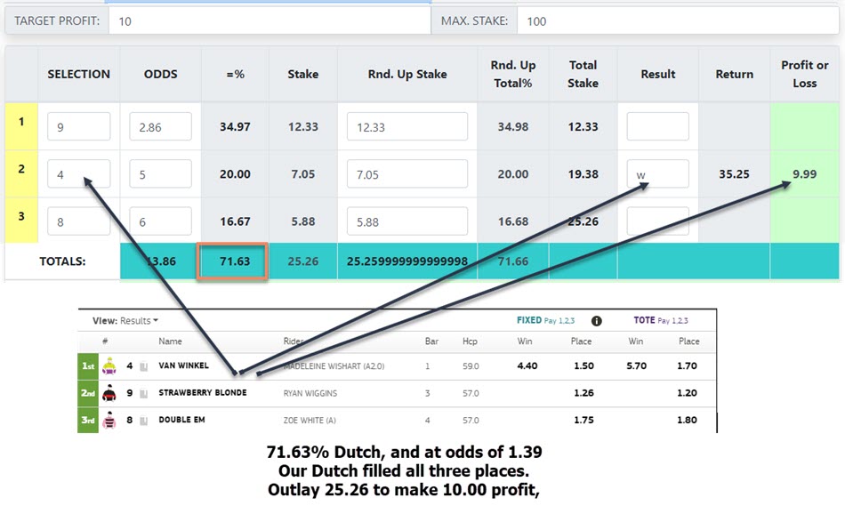We get the win, and by doing the Dutch on the correct score we pick up the extra £5.00 profit, for the similar outlay.
