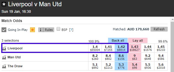 Liverpool is hot fav (record winning streak). In Match Odds playing 1.42 to win.